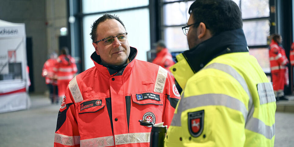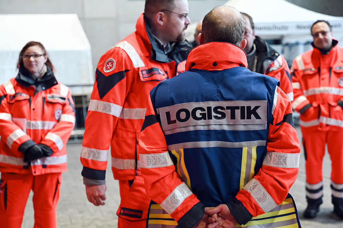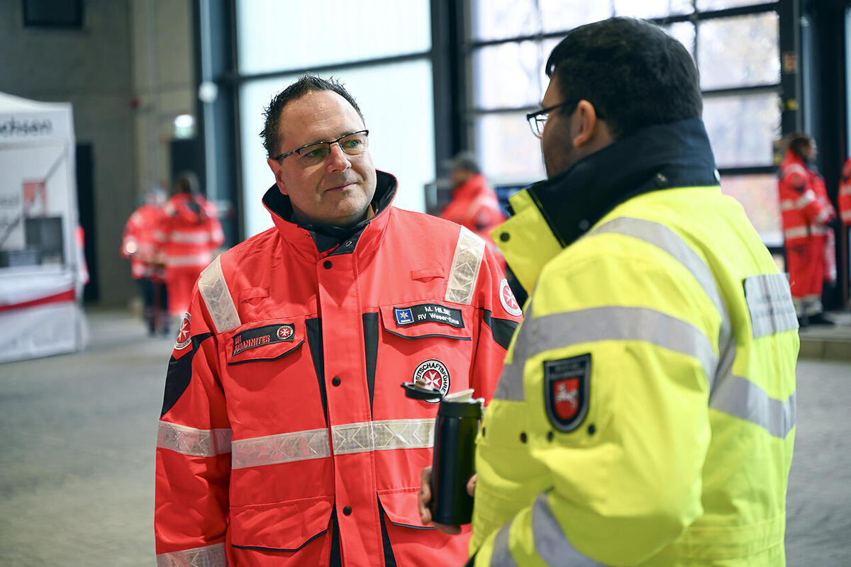 Aufgrund der großen Zahl der für Aufbau und Betrieb des BHP 50 notwendigen Einsatzkräfte haben die Johanniter die Teileinheiten auf die Ortsverbände in der Region verteilt. Mit dabei waren Kräfte aus Nordhorn in der Grafschaft Bentheim, Lingen im südlichen Emsland, Osnabrück, aus den ostfriesischen Verbänden Aurich, Emden, Wiesmoor und Leer-Moormerland, der Wesermarsch, Wittmund, der Stadt Delmenhorst, dem Oldenburger Münsterland, Wilhelmshaven, dem Landkreis Friesland und der Stadt Oldenburg. Das Einsatzkontingent untersteht direkt dem niedersächsischen Innenministerium und wird koordiniert vom Niedersächsischen Landesamt für Brand- und Katastrophenschutz (NLBK). Ali Burdur, Dezernent Katastrophenschutz vom NLBK, begleitete die Aufbauübung als Beobachter und war begeistert über die Leistung der Johanniter. „Ich bin sehr beeindruckt von Ihrem Engagement und Einsatz“, sagte er bei der Abschlussbesprechung. Zufrieden war auch Regionalbereitschaftsführer Martin Hilse (Stedingen): „Ich bin begeistert, dass wir wirklich in voller Stärke da waren und bis auf wenige Kleinigkeiten alle Abläufe aufgrund des Engagements und der Leistungsfähigkeit der Gruppen saßen und alles gut lief. Somit sind wir gut auf den Ernstfall vorbereitet.“