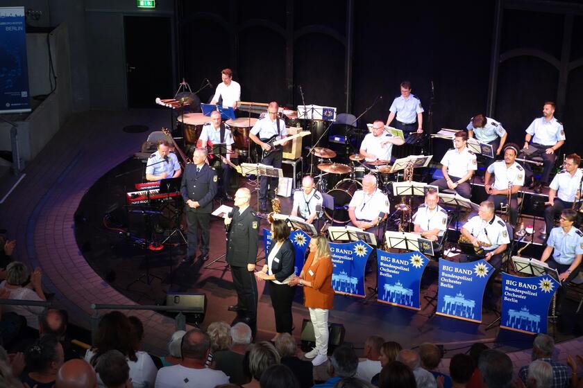 Am vergangenen Donnerstag fand das Benefizkonzert der Bundespolizeiinspektion Forst im Amphitheater der Neuen Bühne in Senftenberg statt. Unter dem Motto: " Cant Stop The Feeling" präsentierten Ausnahmesänger Kirk Smith und die Show-Big-Band des Bundespolizeiorchsters Berlin zugunsten der Lacrima-Gruppen für trauernde Kinder und Jugendlichen und des Ambulanten Kinderhospizdienstes "Pusteblume" des Regionalverbandes Südbrandenburg ihre musikalischen Künste.