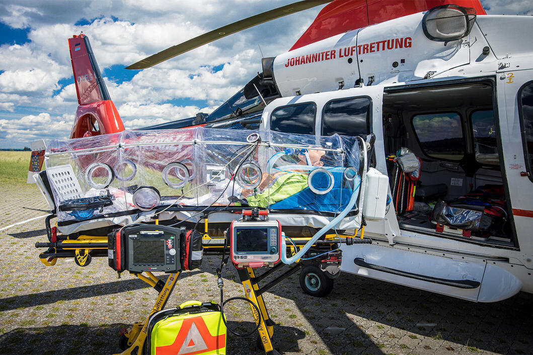 Die Johanniter Luftrettung übernimmt in Hessen alle luftgebundenen Spezialtransporte. Darunter fallen Verlegungen mit dem Infektionsschutztransportsystem IsoArk, Transporte von Patienten bis 350 kg Körpergewicht, Inkubator- und ECMO-Transporte. Mit dem Luftrettungszentrum in Gießen und dem Standort in Reichelsheim kann die Johanniter Luftrettung mit ihrer in Deutschland einzigartig aufgestellten Flotte auf jede Anforderung ideal reagieren.