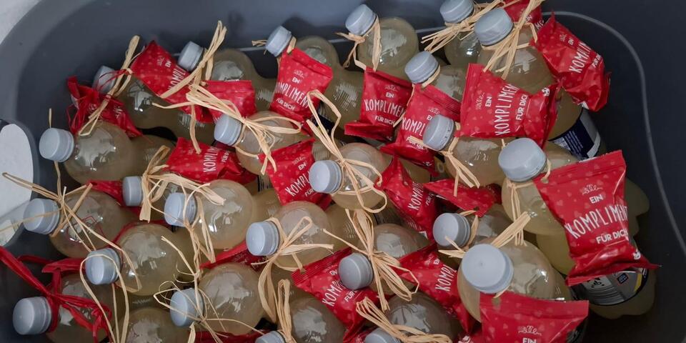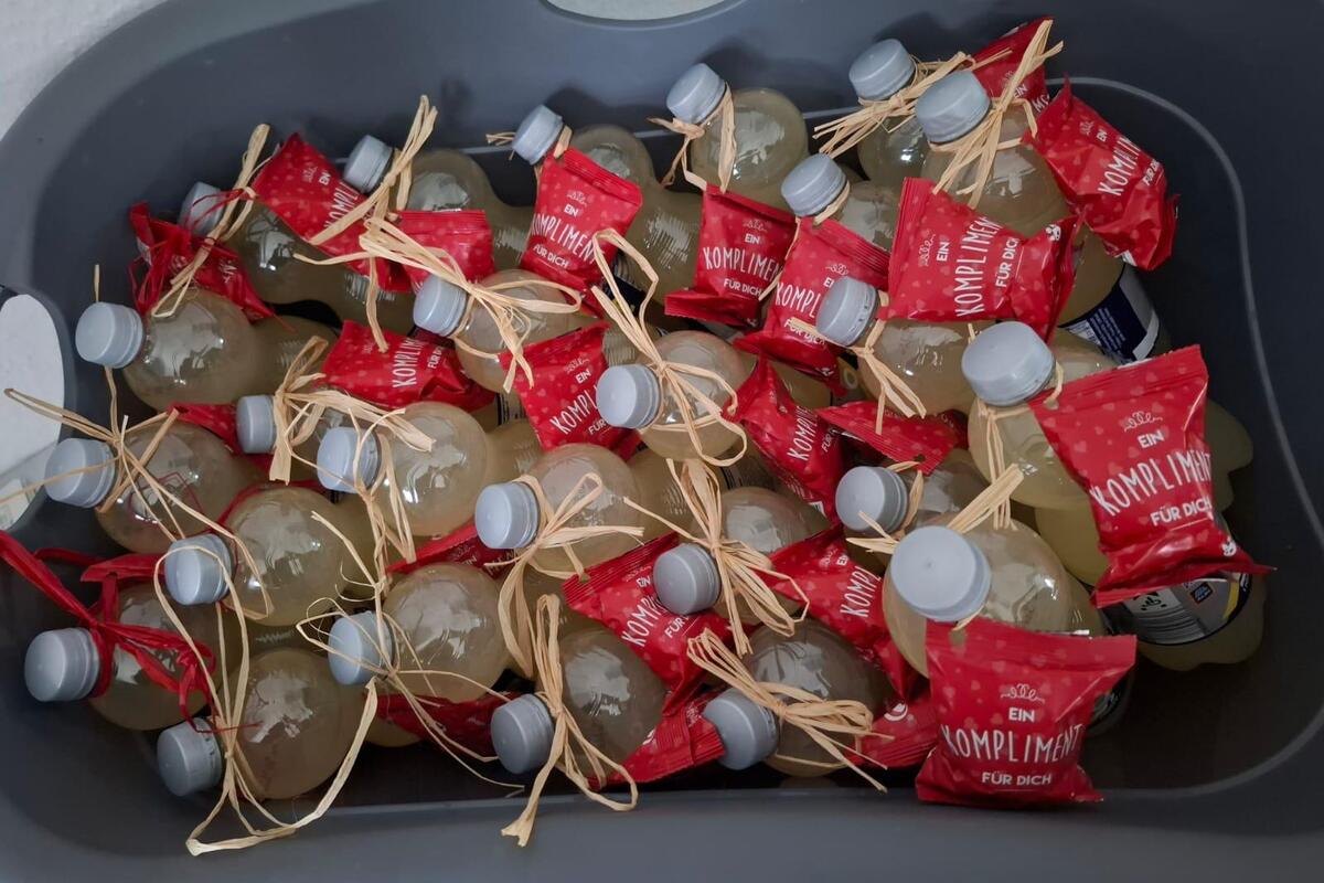 Jede Teilnehmerin und jeder Teilnehmer erhielt als Dankeschön ein Iso-Sportgetränk und einen Glückskeks mit der Botschaft: Ein Kompliment für dich.