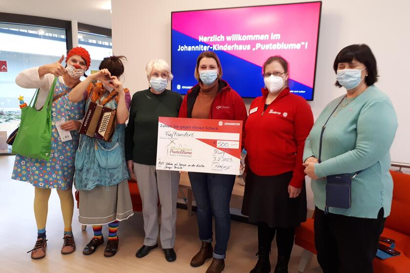 Und wie man Verlust in Glück verwandelt, das zeigte uns diese Woche Maria Rosenberger mit zwei weiteren AWO-Mitbewohnerinnen: 500 Euro aus den Bingo-Spielnachmittagen in der Einrichtung wurden uns als Spende übergeben. Da waren auch die zwei Clownsdamen Pepina und Nokta ganz aus dem Häuschen. Wir bedanken uns für diesen charmanten Besuch und die tolle Unterstützung!