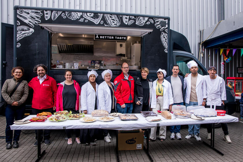 Integration und Austausch auf dem internationalen kulinarischen Fest in der Johanniter-Notunterkunft