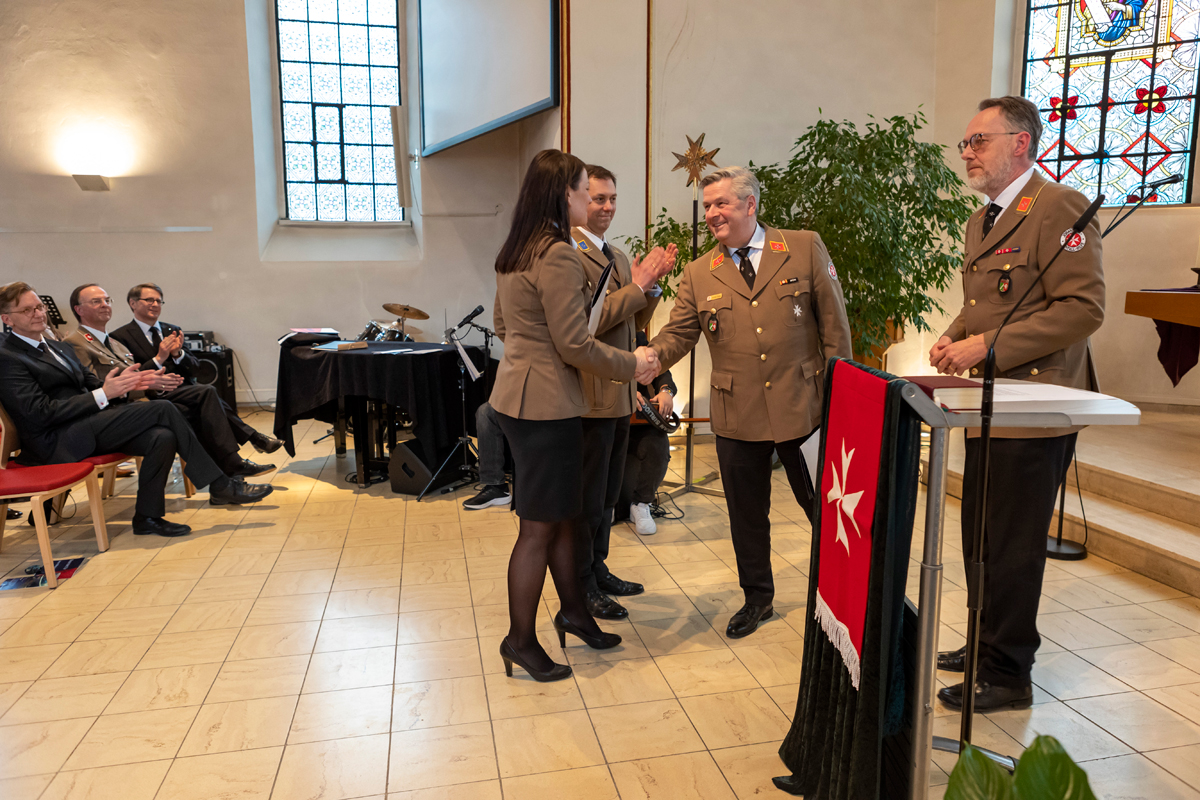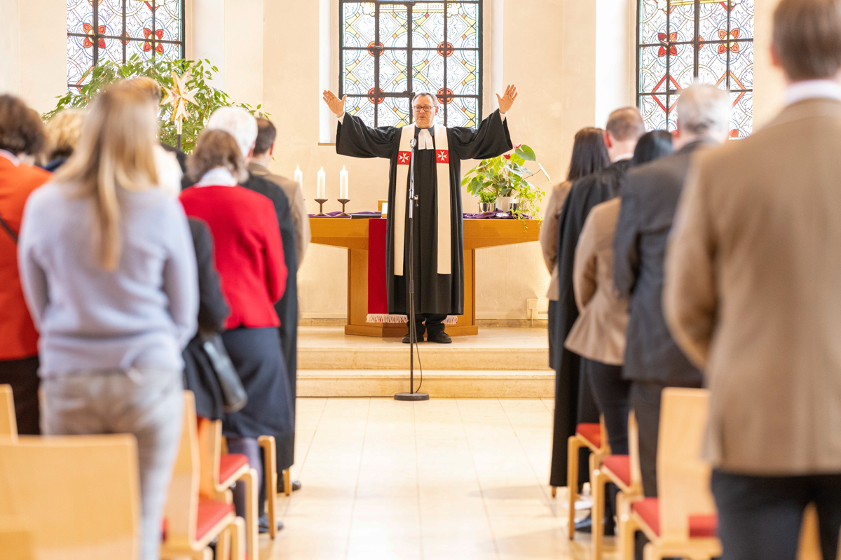 In einer Zeit, in der die Pandemie noch in den Köpfen, ein Krieg in Europa täglich präsent und mit seinen Auswirkungen auch in Deutschland spür- und sichtbar ist, hob Wilhelm Dyckerhoff als ehrenamtlicher Vorstand in seinen Worten vor allem auf den christlichen Aspekt der gemeinnützigen Johanniterarbeit ab. Denn Dyckerhoff sieht die Johanniter auch als Brückenbauer zwischen Glaube und helfendem Dienst am Nächsten: "Als ehrenamtliches Vorstandsmitglied möchte ich passende Steine und Zement suchen, diese Verbindung zwischen Himmel und Erde zu pflegen, sichtbarer zu machen und weiter zu stärken – für eine Welt mit Hoffnung und Heilung." Den Kaufmann, Unternehmer und weitläufig vernetzten Ehrenamtlichen konnten die Johanniter vor allem als Vorstandsmitglied gewinnen, da er die professionelle und durchweg empathische Arbeit der Haupt- und Ehrenamtlichen im Dienst der Menschen in der Region bewundert.