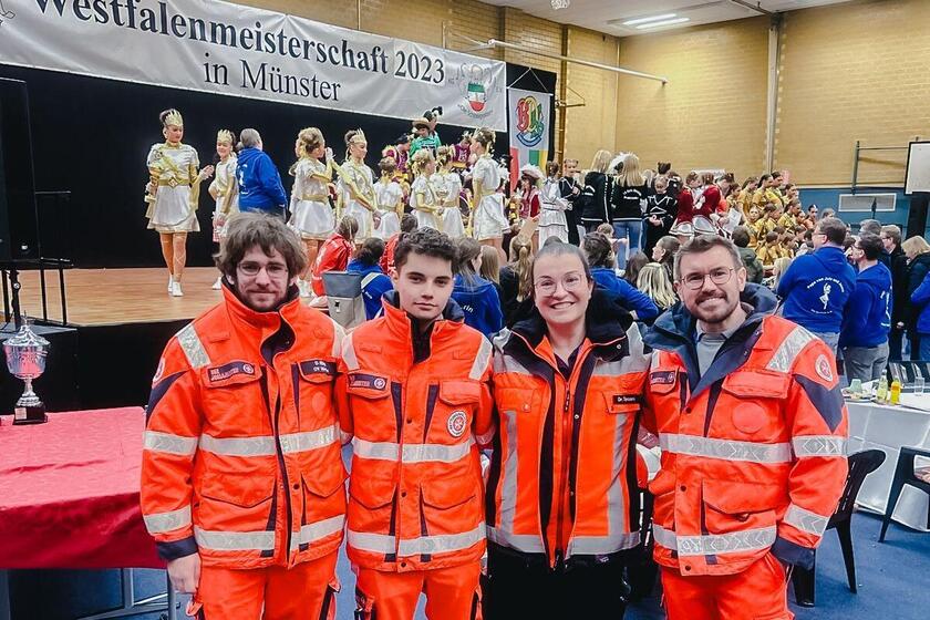 „Alle Teams geben hier Vollgas, und da sind verstauchte Knöchel, Probleme mit dem Sprunggelenk oder eine Kreislaufschwäche ganz normal“, erklärt Sebastian Thiemann von den Johannitern. Besonders bei den Solotanzmariechen musste er mit seinem Team ein paar Mal aktiv werden, zum Glück aber nichts Ernstes. Letztes Wochenende fanden die Westfalenmeisterschaften im Karnevalstanz in Hiltrup statt. Sebastian Thiemann ist Teil des Sanitätsteams für diese Veranstaltung. Sie hatten alles im Blick und stellten sicher, dass die Tänzerinnen und Tänzer bei ihren Vorführungen gut aufgehoben waren.