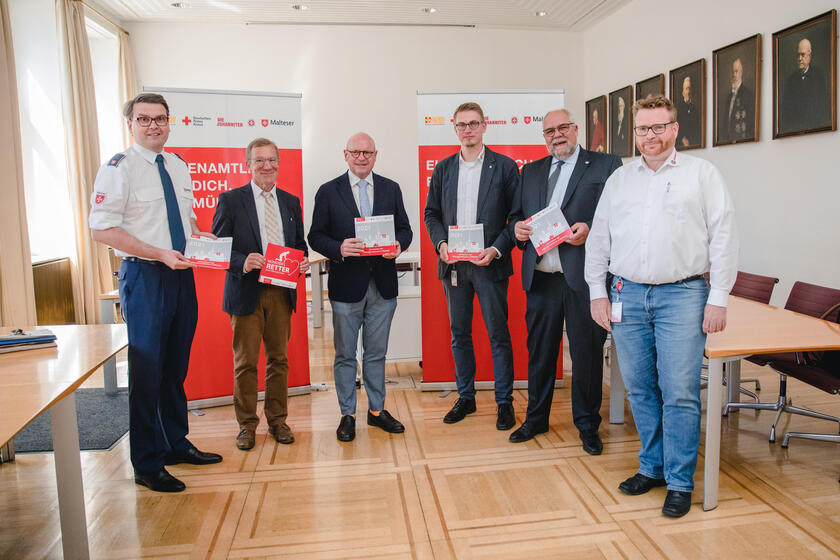 Ob bei der Bewältigung der Pandemie, dem Einsatz beim Schneechaos im Februar und in den Flutgebieten in NRW und Rheinland-Pfalz oder bei den zahlreichen Sanitätsdiensten – die Hilfsorganisationen stehen der Stadt Münster als zuverlässiger Partner zur Seite und helfen da, wo Hilfe gebraucht wird. Im Bündnis „Gemeinsam für Münster“ haben die vier Hilfsorganisationen ASB Regionalverband Münsterland e.V., DRK-Kreisverband Münster e.V., JUH e.V. Regionalverband Münsterland/Soest und Malteser Hilfsdienst e.V., Stadtverband Münster gestern ihre Jahresbilanz an Stadtrat Wolfgang Heuer und Oberbürgermeister Markus Lewe übergeben.
