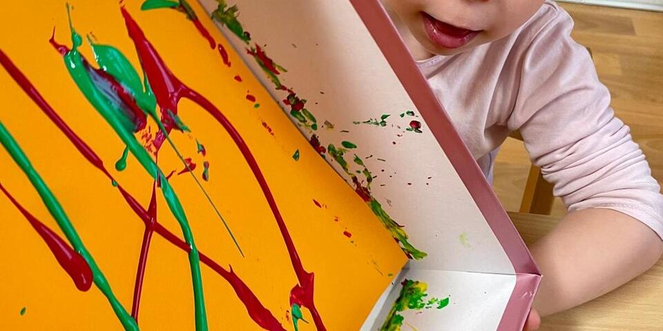 Die Kobolde haben die Kastanienrolltechnik angewendet, um das Papier für ihre bunten Drachen farbig zu gestalten. Das hat ihnen viel Freude bereitet und sie waren erstaunt, was auf ihren Blättern für schöne Muster und Farbspiele entstanden sind. Sie wollten gar nicht aufhören. Am nächsten Tag wurden aus den bunten Papieren fröhliche Drachengesichter., die nun das Zimmer schmücken.