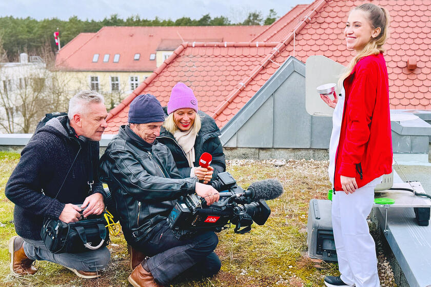Heute kurz vor 20:00 Uhr im RBB Brandenburg aktuell meldet sich das Brandenburg-Wetter vom Dach unseres Krankenhauses. Gesprächspartnerinnen der Wetterfee Ulrike Fink sind Schw. Hanna aus der allergologischen Ambulanz und die Leitende Oberärztin des Zentrums für Allergologie und Asthma, Heike Lehmann-Pötzsch.