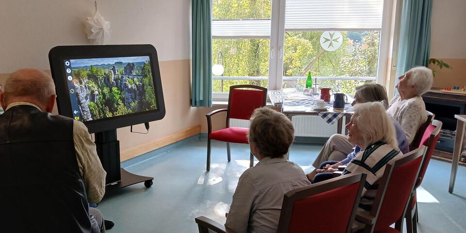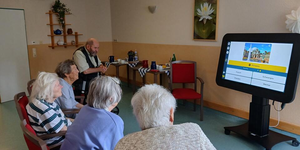 Er bietet vielfältige Anwendungen wie zum Beispiel Quizrunden, Bewegungsübungen, Biografie-Arbeit, Gedächtnistraining, Spiele – und ist aufgrund von verschiedenen Schwierigkeitsgraden anwendbar für alle Bewohnerinnen und Bewohner.