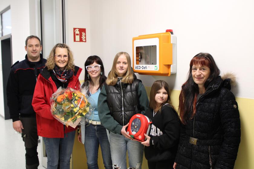 In einem Notfall können Ersthelfer das elektronische Gerät zur Wiederbelebung in der Mihlaer Schule nutzen