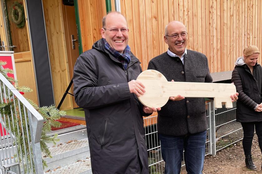 Passend zum Tier des Jahres 2024, dem Igel, haben die Johanniter ihre neue Naturkita in Sindelfingen-Maichingen "Igelwiese" genannt. Für den dazugehörigen Bauwagen war jetzt die offizielle Schlüsselübergabe mit Sindelfingens OB Bernd Vöhringer.