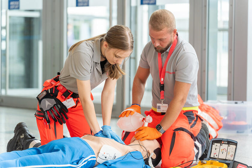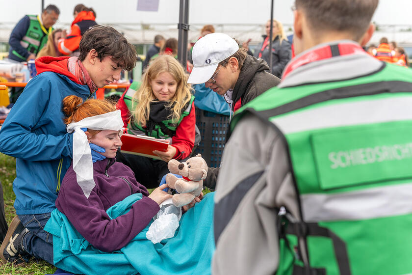 Das Herzstück des Wochenendes bildete der Bundeswettkampf in Erster Hilfe und Notfallrettung. 54 Johanniter-Teams aus allen neun Landesverbänden und sechs Gastmannschaften traten auf dem Gelände der Messe Erfurt in realistischen Szenarien gegeneinander an, um die besten Retter Deutschlands zu ermitteln. Die Teilnehmenden bewältigten anspruchsvolle Aufgaben aus den Bereichen Erste Hilfe und Notfallrettung. Sie meisterten Einsatzszenarien wie Verkehrsunfälle, Brandverletzungen, Herz-Kreislauf-Erkrankungen oder die Versorgung von Wunden. Alle Szenarien wurden von professionellen Darstellenden überzeugend präsentiert. 130 Schiedsrichterinnen und Schiedsrichter bewerteten die Leistungen.