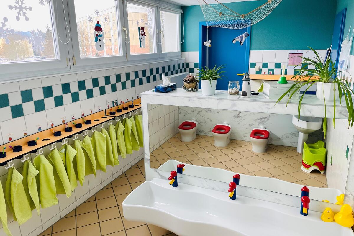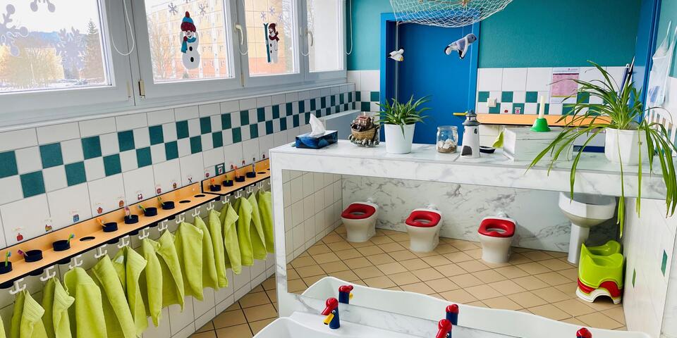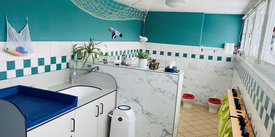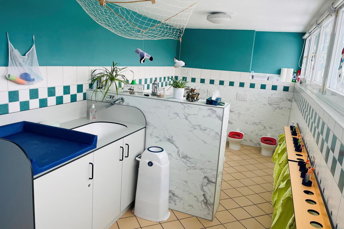 Ziel der Arbeiten war es, den Raum modern zu gestalten, so dass sich unsere Kinder wohlfühlen und spielerisch an Hygiene und Selbstständigkeit herangeführt werden können. Das neue Bad überzeugt durch helle Farben, kindgerechte Sanitäranlagen und weitere altersgerechte Ausstattung. Die Kinder lieben es!