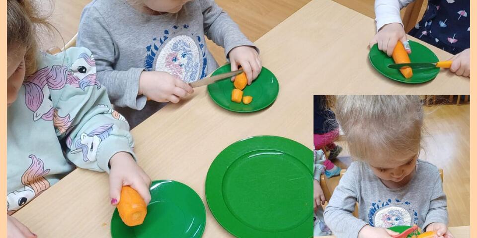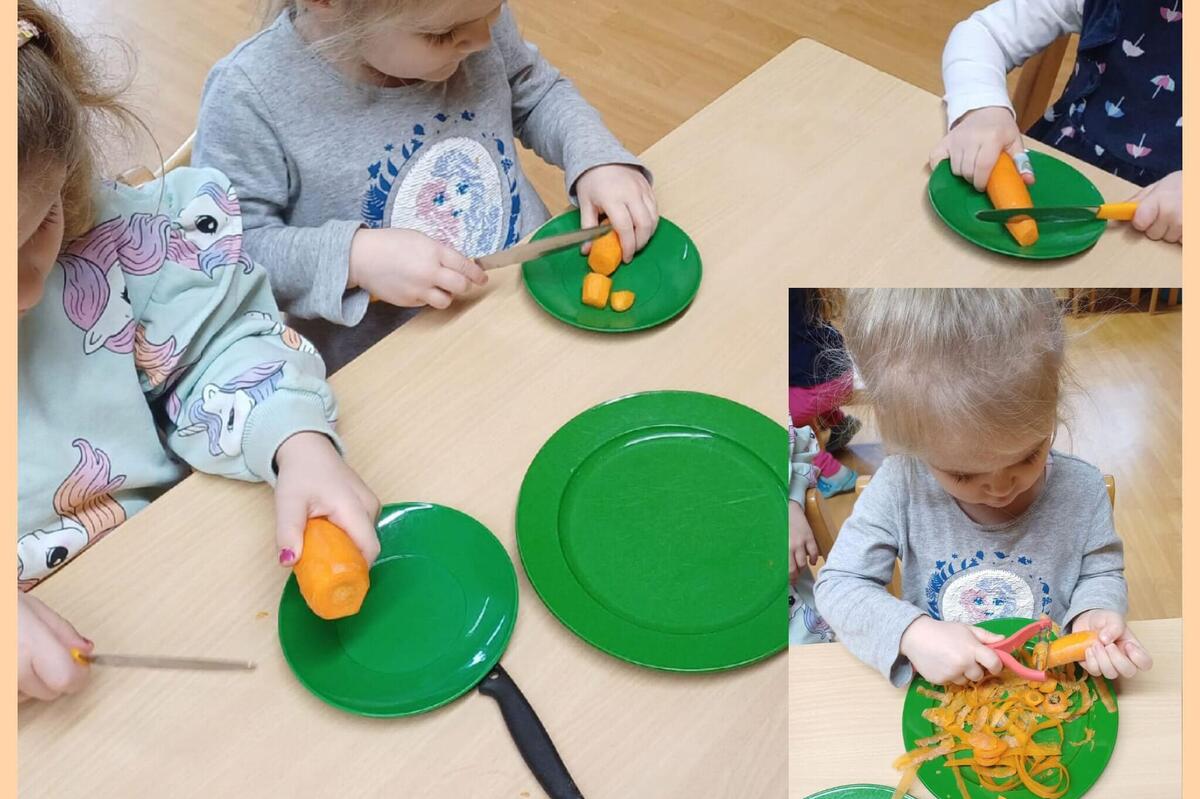 Für unsere Obstpause haben wir Apfelchips selbst hergestellt. Dazu wurden Äpfel geschnitten und danach getrocknet, um diese später als gesunden Snack zu verzehren. An einem anderen Tag wurden Möhren mit geschält und geschnitten. Das war erstmal nicht so einfach, aber mit etwas Übung ging es später immer besser.