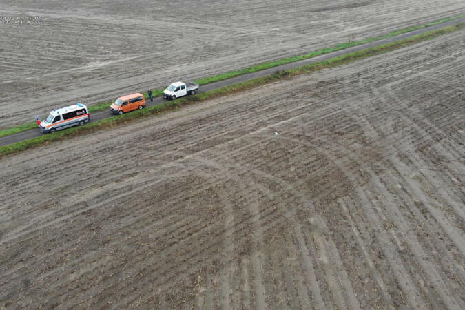 Mit ihren Drohnen halten die Einsatzerfahrenen Piloten der SEG F.L.I.G.H.T. in der Gemeinde Schenkendöbern des Landkreises Spree-Neiße, Ausschau nach möglichen Wildtierkadavern. Das Kerngebiet in den Landkreisen Spree-Neiße und Oder-Spree hat eine Fläche von circa 150 Quadratkilometern und einen Umfang von circa 60 Kilometern. Insgesamt 36 infizierte Wildschweine wurden bisher innerhalb des eingezäunten Kerngebiets gefunden, davon 9 nahe Schenkendöbern im Landkreis Spree-Neiße und 27 nahe Neuzelle im Landkreis Oder-Spree (Stand 28.09.2020, Quelle: Ministerium für Soziales, Gesundheit, Integration und Verbraucherschutz des Landes Brandenburg).
