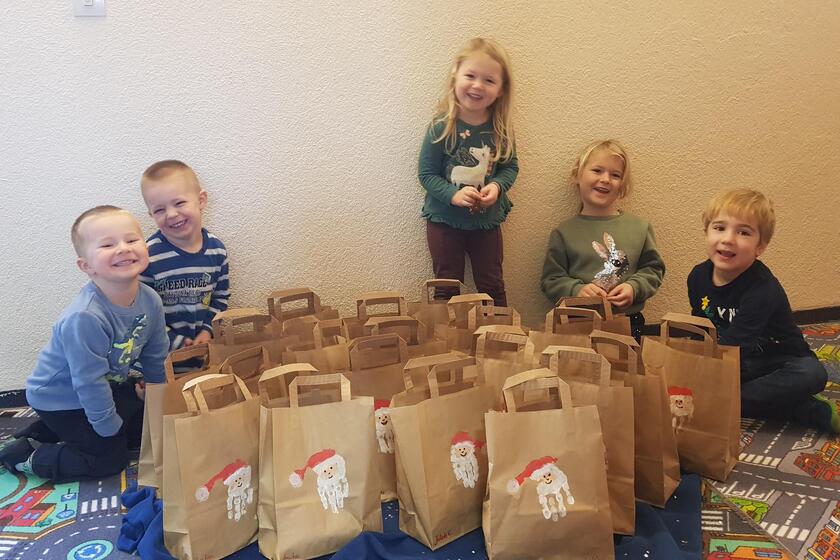 Organisiert hatte die Aktion zugunsten der Kinder der Elternbeirat, allen voran die Vorsitzende Katharina Gleitner. Die „Frechdachse“ hatten die Säckchen gestaltet und Katharina Gleitner hatte diese dem EDEKA-Filialleiter Benedikt Mehringer übergeben. Der Inhalt ließ für die Kinder keine Wünsche offen: Sie konnten sich über Schoko-Nikolaus, Mandarinen, Äpfel, Erdnüsse und Schokoladen-Taler freuen.