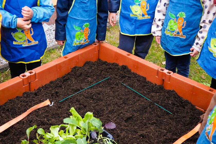 Am Nachmittag pflanzten wir gemeinsam mit der EDEKA-Stiftung im Rahmen des Projekts „Gemüsebeete für Kids“ frisches Gemüse – bald ernten wir unsere ersten Karotten!