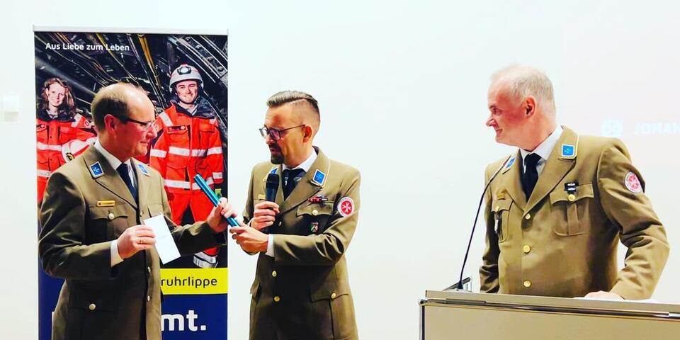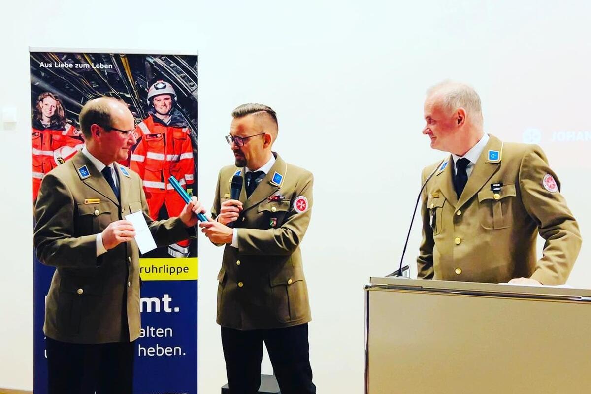 André Paudtke bedankte sich auch noch einmal für das Vertrauen der beiden Regionalvorstände und vor allem bei Jörg Bombien. "Seit ich bei den Johannitern Herdecke bin, kenne ich dich lieber Jörg. Du hast über die vielen Jahre eine großartige Leistung erzielt und ich habe viele tolle und spannende Ausbildungen genossen, die mich und den JUH-Ortsverband hier in dieser Stadt sehr geprägt haben", so der neue Ortsbeauftragte.