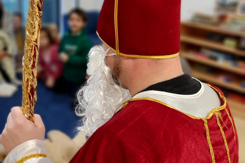 Und dann war es endlich so weit. Mit einem Sack voller kleiner Geschenke über der Schulter besuchte der Nikolaus die Gruppen – getreu seiner Botschaft, dass Teilen Freude bereitet und es schön ist, anderen Menschen etwas Gutes zu tun.