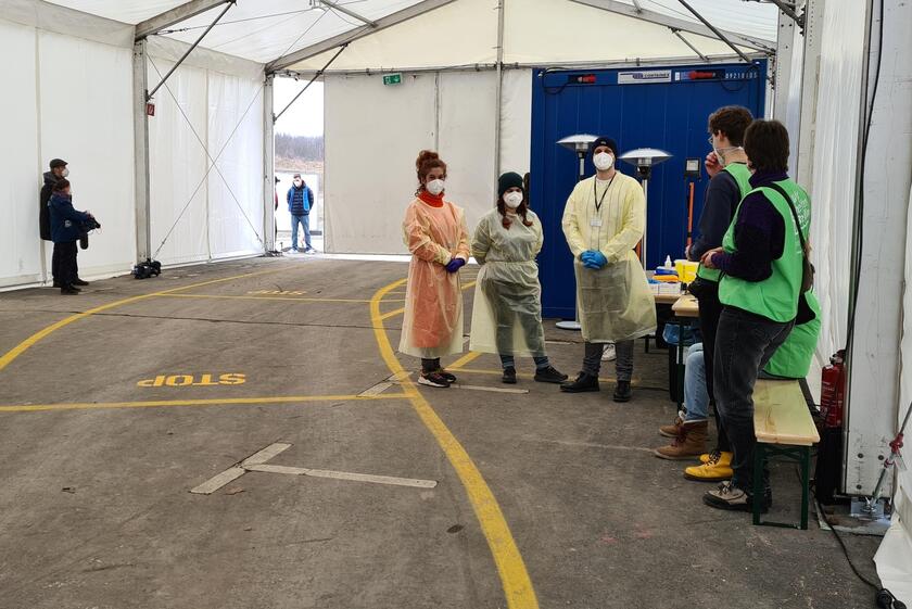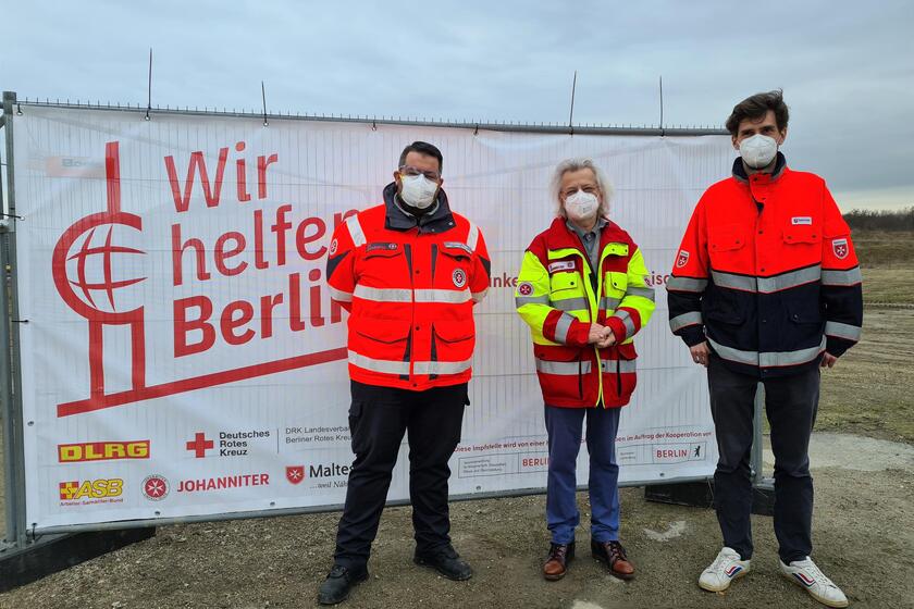 Die Berliner Johanniter betreiben die Impfstelle, die in Zusammenarbeit mit dem Bezirk Lichtenberg errichtet wurde, im Auftrag des Landes Berlin.