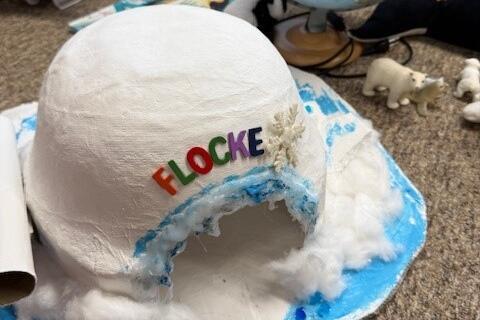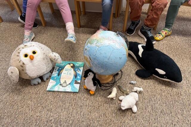 Darin war gleich oben ein Brief von Ila, einem Mädchen, welches im Norden lebt. Sie möchte den Kindern zeigen, wie schön ihre Heimat ist. Als die Kinder weiter schauten, entdeckten sie ein Kuscheltier. Ila hat unseren Kindern ihren Freund Flocke mit seiner Höhle mit ins Paket gelegt. Flocke begleitet nun die Gruppe durch das Projekt und ist das Maskottchen. Er wohnt in seiner kuscheligen Eishöhle natürlich mit im Gruppenzimmer bei den Kindern. Ila schreibt den Kindern immer wieder Briefe mit verschiedenen Aufgaben, die die Wackelzähne mit Spaß und Begeisterung erledigen. So erfahren sie viel über den Nordpol und über die Tiere, die dort leben. In Phantasiereisen begegnen sie einer Welt aus Eis und Schnee und lernen die geheimnisvollen und bunten Polarlichter kennen und sie gestalten ihre eigenen Polarlichter. Die Wackelzähne haben ihren Flocke als Wegbegleiter lieb gewonnen und werden auch im nächsten Monat noch schöne Erlebnisse mit Flocke haben.