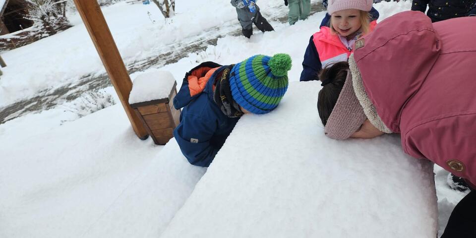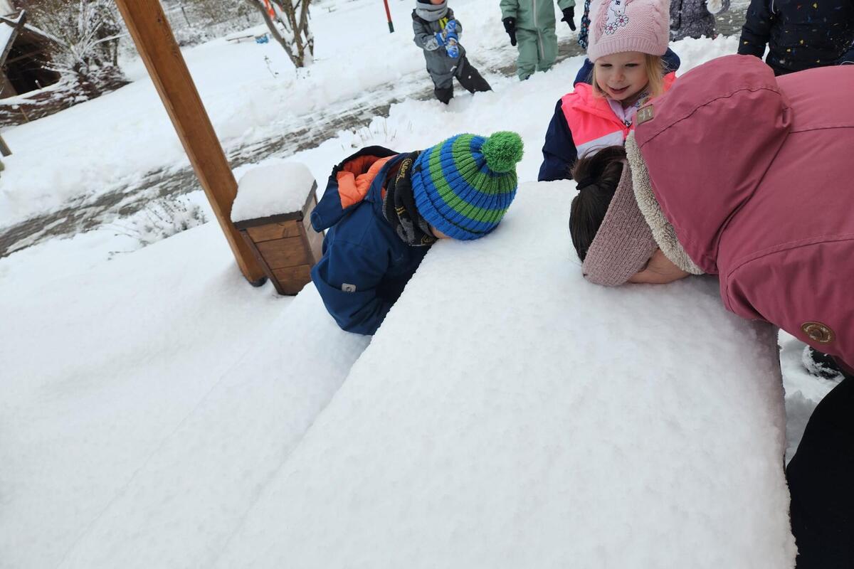 Das herrliche Winterwetter mit all seinen Facetten genossen auch alle anderen Kinder im Haus. Die Fahrten mit dem Rutschdeckel waren sehr beliebt und die Rodelpiste immer belegt. Die Kinder konnten Schneemänner in verschiedenen Größen bauen und sehen, welcher es am längsten schafft, wenn die Temperaturen wieder nach oben gingen. Bei Neuschnee legten die großen mit Ausdauer immer wieder Schneeschnecken an und gingen sehr behutsam darin. Außerdem gab es Schneeengel auf dem Boden. Viele fleißige Kinder schippten und kehrten mit Begeisterung und Ausdauer Schnee von der Rollerbahn. Viel Spaß machten auch die Schneeballschlachten.