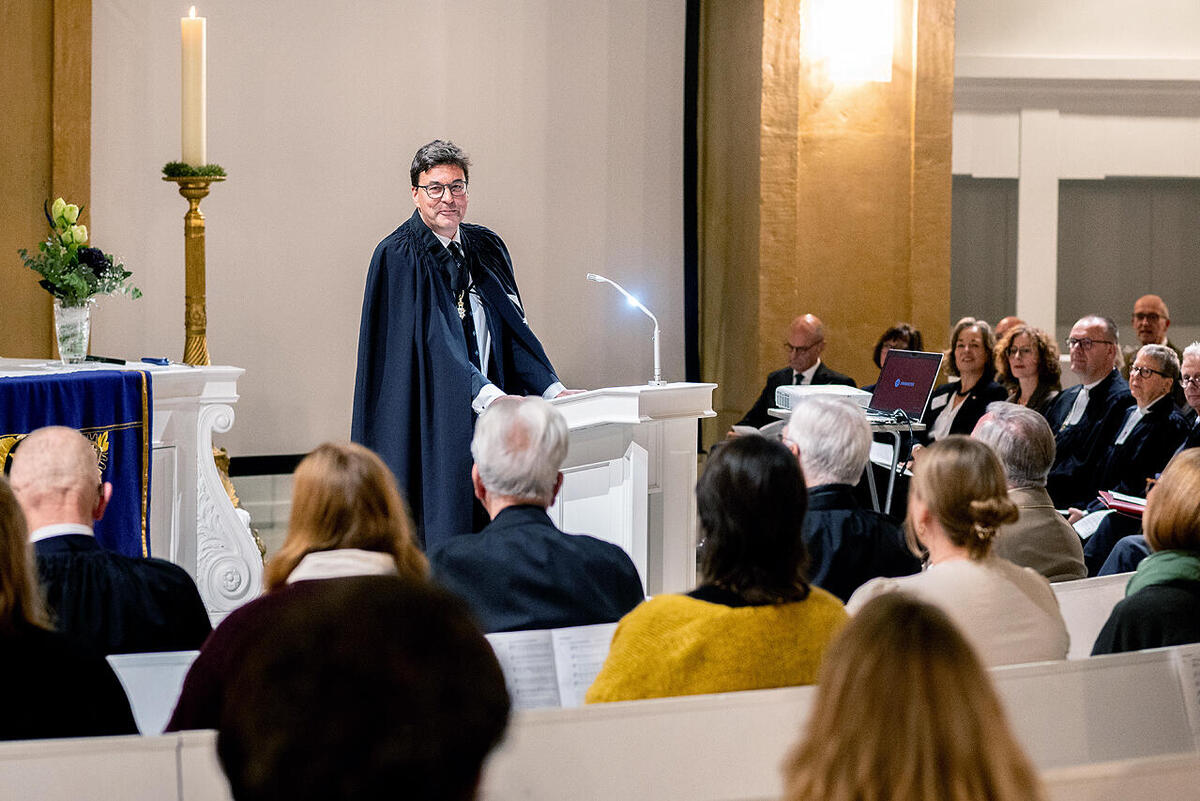 Thomas Adomeit, Bischof der Ev.-Luth. Kirche in Oldenburg, nahm in seiner Predigt Bezug auf die acht Seligpreisungen der Bergpredigt, die von den acht Spitzen des Johanniterkreuzes symbolisiert werden. „Bevor auch nur ein einziges ‚Selig sind‘ gesprochen wird, steht dieser Satz: Jesus sieht die Menschen.“ Das, so Bischof Adomeit, sei zweideutig zu verstehen. Jesus sehe nicht nur die Menschen, sondern sehe auch in sie hinein, in zerbrochene Seelen, in Menschen, die trauerten, denen niemand gesagt habe, dass sie wichtig sind. Selig heiße nicht, dass alle wieder froh und glücklich sind, sondern, dass Gott sie sehe trotz Leid und Gewalt. „Gott spricht euch Würde und Zukunft zu, mitten in eine Welt, in der Gewalt und Unrecht sehr real sind.“ Gott vergesse niemanden, erst recht nicht jene, die schwach sind und in Not. In das Frauenhaus kämen Frauen aus Situationen, in denen Vertrauen zerstört, Nähe missbraucht und das eigenes Zuhause zur Gefahr geworden sei. „Ihr, die verletzt wurdet, seid nicht die, die sich schämen müssen. Nein, nicht ihr habt versagt, sondern andere haben euch Gewalt angetan. Gott stellt sich euch an die Seite und will euch nicht trösten mit Worten, sondern mit Schutz und Menschen, die an euch glauben.“ Das Hanna-Haus werde ein Ort des Trostes sein und an dem nach und nach Vertrauen wachsen und an die Zukunft gedacht werden kann. Bischof Adomeit segnete anschließend alle Mitarbeiterinnen des Hanna-Hauses sowie die Mitglieder des Kuratoriums Jörg Siegert, Daniel Jircik, Dr. Hansjörg Augenstein, Dagmar Sachse, Pfarrerin Petra Adomeit und Anja Siegert sowie die Geschäftsführenden Dr. Anna Simon und Ulf Mindermann.