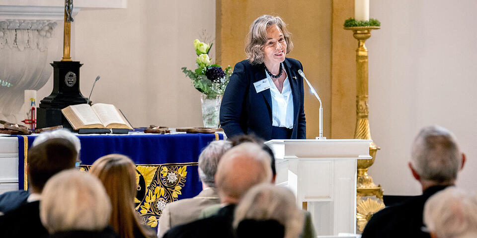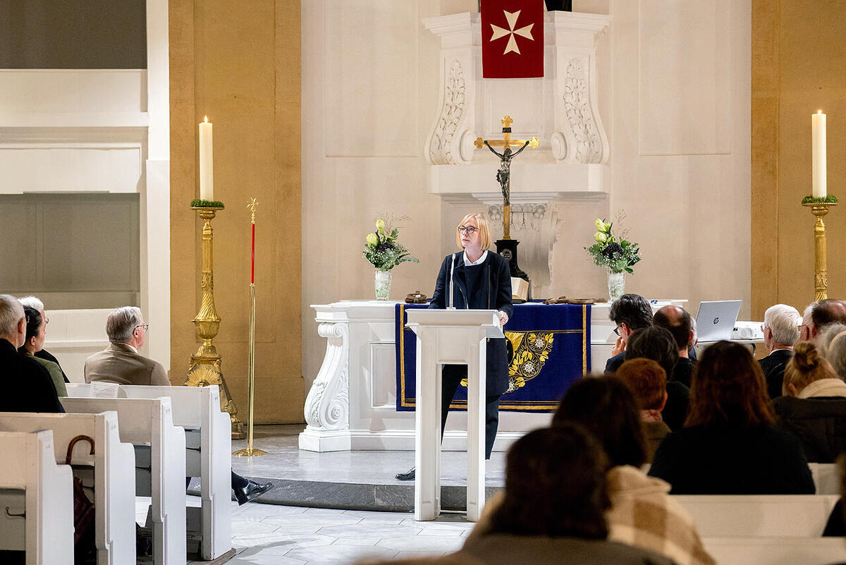 „Ich stehe heute an einem besonderen Ort“, sagte Bürgermeisterin Nicole Piechotta in ihrem Grußwort. Die Lamberti-Kirche sei für viele Menschen in Oldenburg ein Ort des Innehaltens, der Hoffnung und der Kraft. „Hier die Einweihung des Frauen- und Kinderschutzhauses Hanna feiern zu dürfen, hat eine symbolische Bedeutung, denn es steht für Schutz, Würde, Neuanfang und dem gemeinsamen Willen, Gewalt gegen Frauen und Kinder in unserer Stadt nicht hinzunehmen.“ Gewalt gegen Frauen geschehe täglich und nicht am Rand der Gesellschaft. „Die Not der Betroffenen in Sachen Schutzräume ist groß.“ Sie freue sich, dass die Trägerschaft bei den Johannitern in verlässlichen Händen liege.