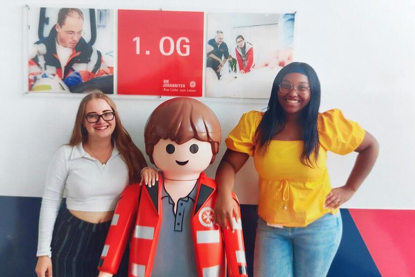 Um so mehr freuen wir uns, dass Briana uns als richtiges "Johanniter-Gewächs" auch weiterhin in vielen Bereichen im Verband erhalten bleibt. Sie engagiert sich im Ehrenamt Düsseldorf und will Verpflegungshelferin werden. Außerdem unterstützt sie die Johanniter-Jugend in Düsseldorf und macht die Fortbildung als Jugendgruppenleiterin. Auch in der Arbeit mit Kindern aus der Ukraine hilft sie mit. Im November beginnt sie dann ihre dreimonatige Ausbildung zur Rettungssanitäterin.
