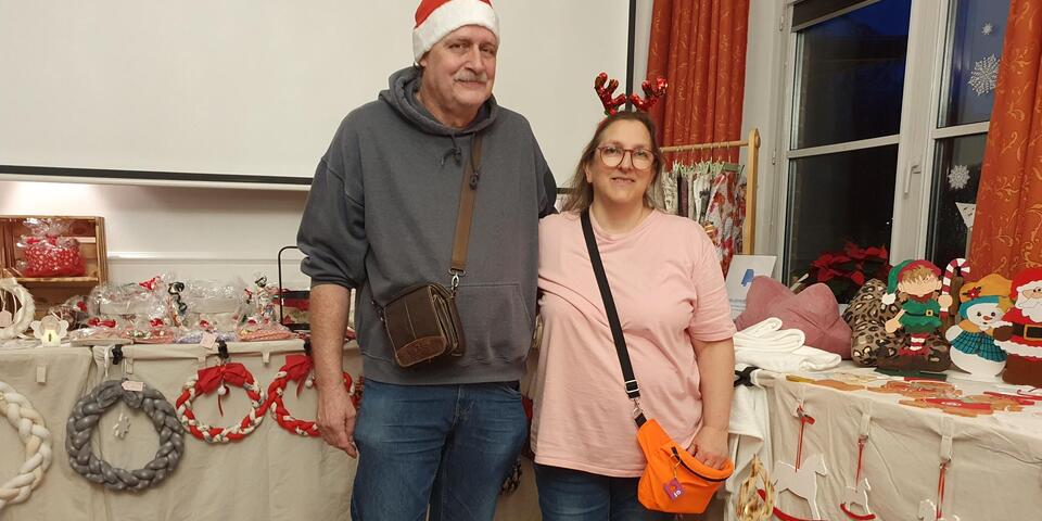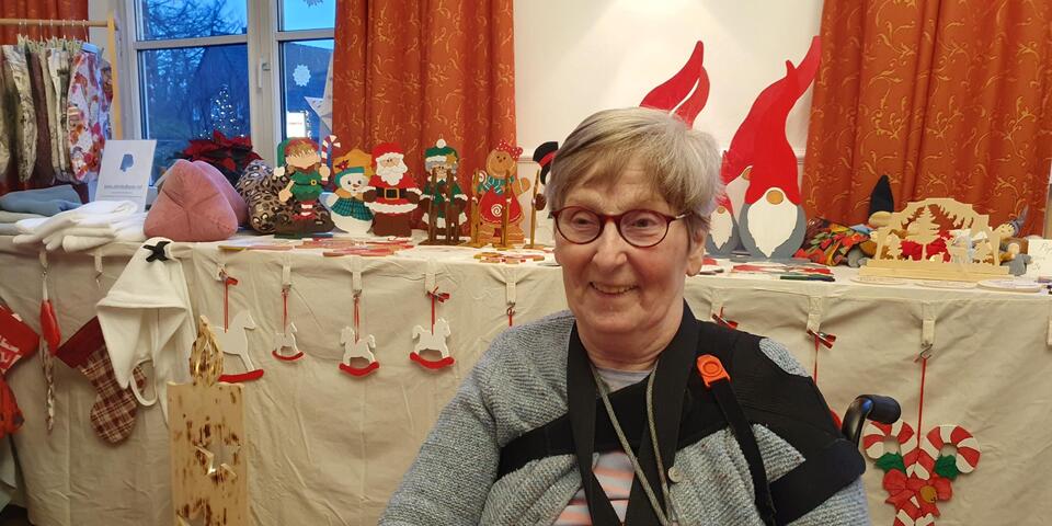 Besonderes Flair zauberten die Stände von Tanja und Wolfgang Jahnke mit Selbstgenähtem aus Stoff und Dekorativem aus Holz sowie der Schmuckstand von Charlotte Blumenschein. Zwischendurch wurden gemeinschaftlich altbekannte Weihnachtslieder gesungen, in Begleitung von Brigitte Selent vom Sozialen Dienst an der Gitarre. Spiele, wie das Glücksrad, ein Wurfspiel, eine Fühl-Oase und ein Schätzspiel, wie viele Christbaumkugeln in einer großen Vase waren, rundeten den gemütlichen Nachmittag ab. Ehepaar Jahnke sagte: „Es war ein gelungenes weihnachtliches Fest. Das Weihnachtslieder Singen hat uns besonders gut gefallen. Wir kommen auf jeden Fall nächstes Jahr wieder.“