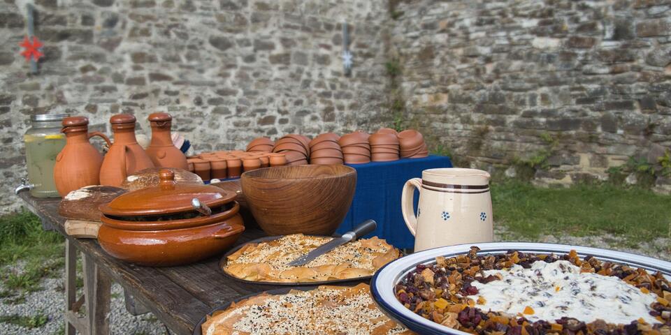 Im Zeichen des Mittelalters stand auch das Essen: Über dem offenen Feuer kochte eine leckere Linsensuppe. Dazu gab es Brot, gefülltes Gebäck, Obst, Holunderlimonade und Apfeltee.