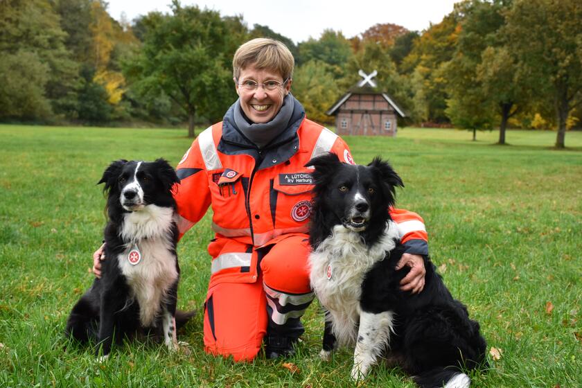 Nachdem die dreijährige Hündin den vermissten Mann im Wald aufgespürt hatte, musste Lütchens unter den wachsamen Augen der Prüfer die medizinische Erstversorgung durchführen. "Als Flachländer war die Prüfung für uns in dem hügeligen Gebiet rund um Bergen anspruchsvoll, weil die Windverhältnisse komplett anders sind", erzählt Lütchens. Sie ist besonders stolz auf Anouks Einsatz, die die Prüfung gleich beim ersten Mal bestand. „Trotz meiner Nervosität hat Anouk sehr gut mitgearbeitet, so dass sich das aufwendige Training gelohnt hat. Das Wichtigste ist eine gute Kommunikation zwischen Hundeführer und dem Hund. Schließlich geht es im Ernstfall um Menschenleben."