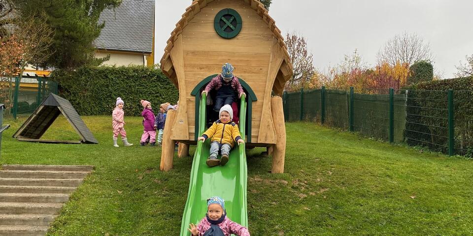 Mit etwas Aufregung, einem tollen Lied und viel Kinderlachen haben wir unseren neuen Rutschenturm eingeweiht!