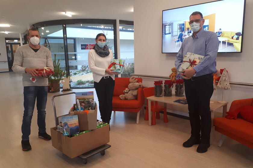 Eine vorweihnachtliche Überraschung ereignete sich im Kinderhaus Pusteblume: Bert Kollmann brachte im Auftrag der Adventgemeinde Ludwigsburg liebevoll gepackte Päckchen für unsere kleinen Gäste. Dank einer Spendenaktion der Gemeinde konnten 20 Bücher aus dem Kondoo-Verlag übergeben werden, die speziell für Kinder, die nicht lesen können, gedacht sind: Mit einem digitalen Stift tippt man einfach auf ein beliebiges Bild auf einer Buchseite und lässt sich den Text vorlesen oder hört ein Lied. Auf kindgerechte Weise werden in dieser Buchausgabe Bibelgeschichten plastisch nacherzählt. Wir freuen uns sehr darüber und bedanken uns ganz herzlich für diese besonderen Geschenke!