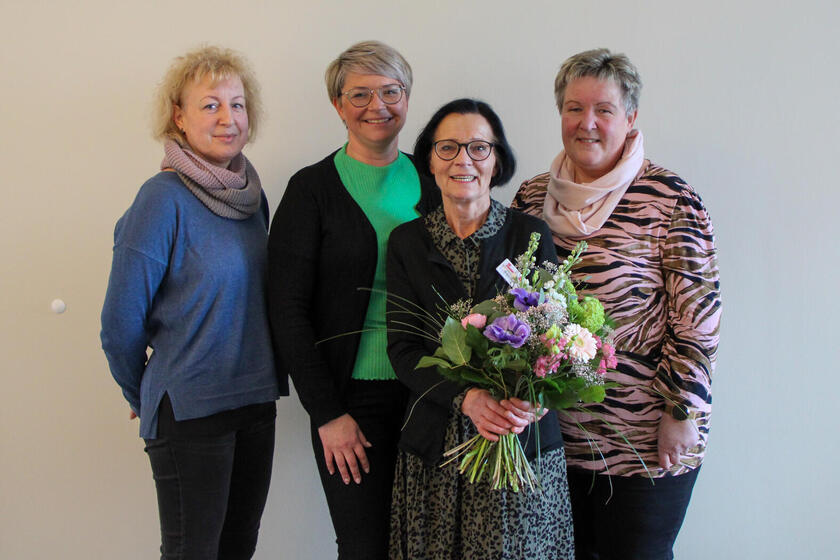 Ehe sie ab März in den Ruhestand geht, wurde sie noch gebührend verabschiedet. Zu Besuch in die Tagespflege kamen Heike Ritter als Wegbegleiterin der letzten Jahre und Monique Stanke, Leitung der Regionalgeschäftsstelle stellvertretend für die Mitarbeiter der Verwaltung. Neben einem Abschiedsgeschenk gab es herzliche Dankesworte, verbunden mit den besten Wünschen für ihren zukünftigen Weg.