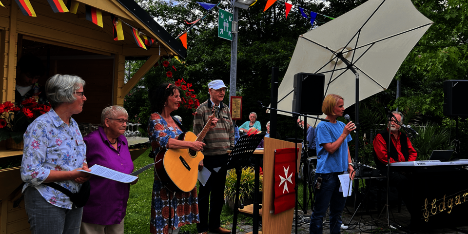 Das gemeinsame Singen von Friedensliedern, Gebet und emotionaler Einkehr waren ein bedachter Auftakt für ein unbeschwertes, fröhliches Fest. Musikalisch bot Edgar Louis einen abwechslungsreichen Nachmittag – mit Schnulzen, Schlager und Evergreens wurden sämtliche Wünsche von den Zuhörenden erfüllt. Die „Johanniter-Chor-Einlage“ unserer sangesfreudigen Bewohner und Bewohnerinnen erhielt am Nachmittag großen Zuspruch und Applaus – die wöchentlichen Proben haben sich hörbar gelohnt!