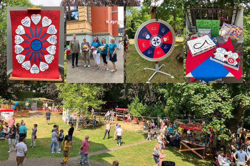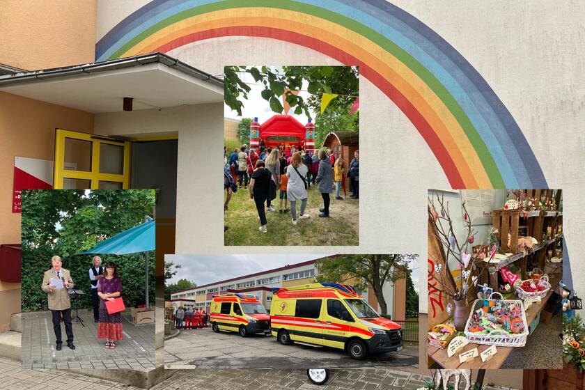 Ebenfalls am 16.06.2023 feierte unsere Kita "Regenbogen" in Kirchberg ihr 30-jähriges Bestehen und zugleich ihr Sommerfest. Unser Dank gilt an Kitaleiterin Frau Katrin Wieden und unser ehrenamtlichen Regionalvorstand Dr. Johannis Körner, die die Jubiläumsfeier offiziell eröffneten. Zum Glück verzogen sich die Regenwolken und es konnte ausgelassen gefeiert, getobt, gebastelt und geschlemmt werden.