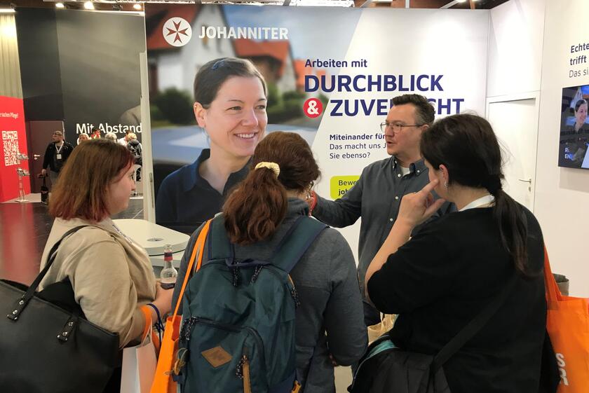 Die Johanniter Seniorenhäuser GmbH und die Johanniter-Unfall-Hilfe e. V. haben sich vom 25.4. bis 27.4.2023 auf der Altenpflege in Nürnberg präsentiert - erstmals im Design der neuen Arbeitgebermarke.