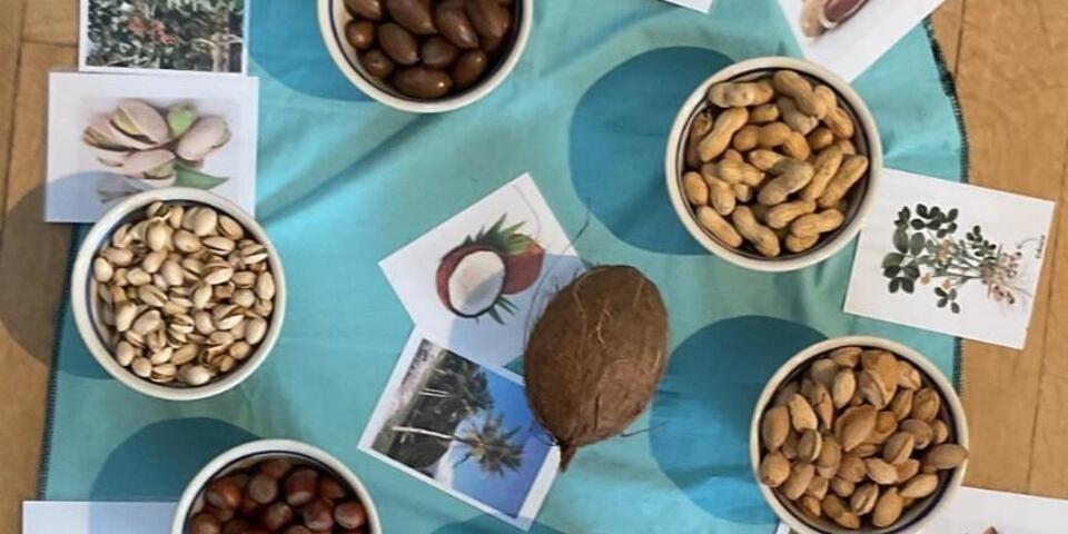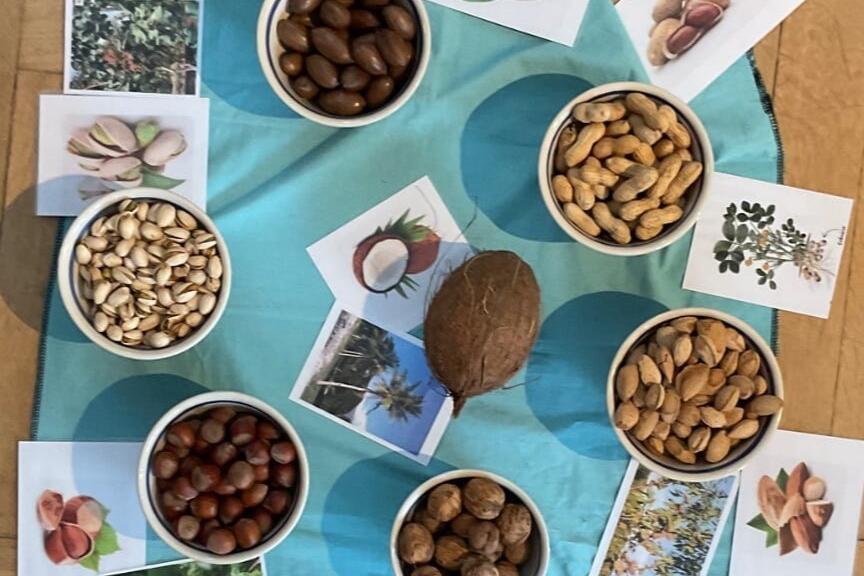 Die Nussgruppe begleitete verschiedene Nüsse vom Wachsen über die Ernte bis hin zur Verarbeitung. Hasel-, Wal-, Peka-, Kokos- und Erdnüsse sowie Mandeln und Pistazien wurden verkostet, gemahlen und zu Kuchen und anderen Leckereien gebacken.