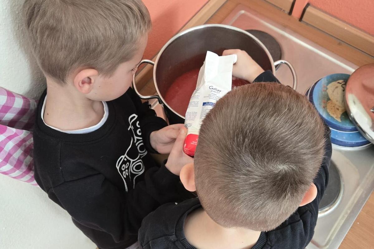 Beim Thema saisonales Obst & Gemüse wurde mit allen Sinnen gelernt: Der Unterschied zwischen tiefgefrorenem und frischem Obst wurde erschmeckt, lange Transportwege entdeckt, selbst eingekauft und zum Abschluss eine leckere Orangenmarmelade gekocht.