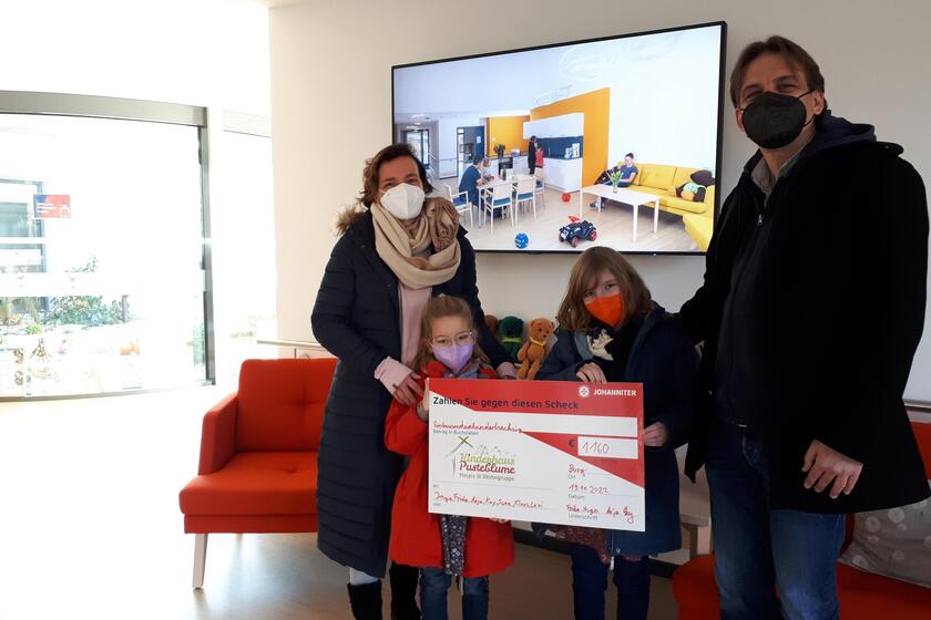 Frieda und Inga, die beiden kleinsten Beusters, durften dafür den ersten "Scheck" ihres Lebens ausstellen und natürlich gemeinsam mit den Eltern auch vor die Kamera treten für diesen denkwürdigen Moment.