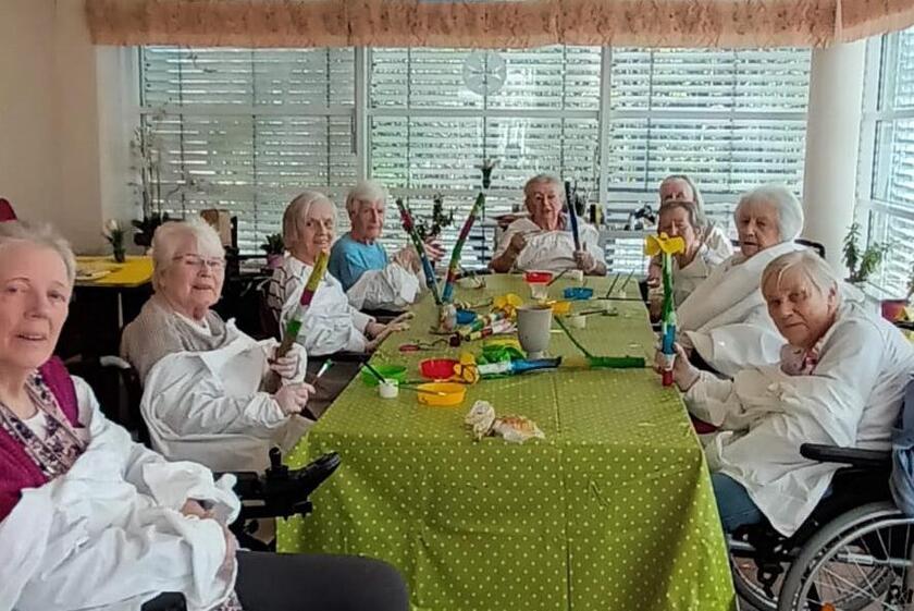 Unsere Bewohnerinnen und Bewohner probieren immer gern mal etwas Neues aus – und so entstanden im Rahmen des Kreativen Gestaltens kleine Figuren aus Ästen, die bunt bemalt wurden. Versehen mit kleinen Hüten, Augen und fröhlichen Gesichtern schmücken diese niedlichen Stockfiguren nun die Gemeinschaftsräume und sind ein wahrer Hingucker!