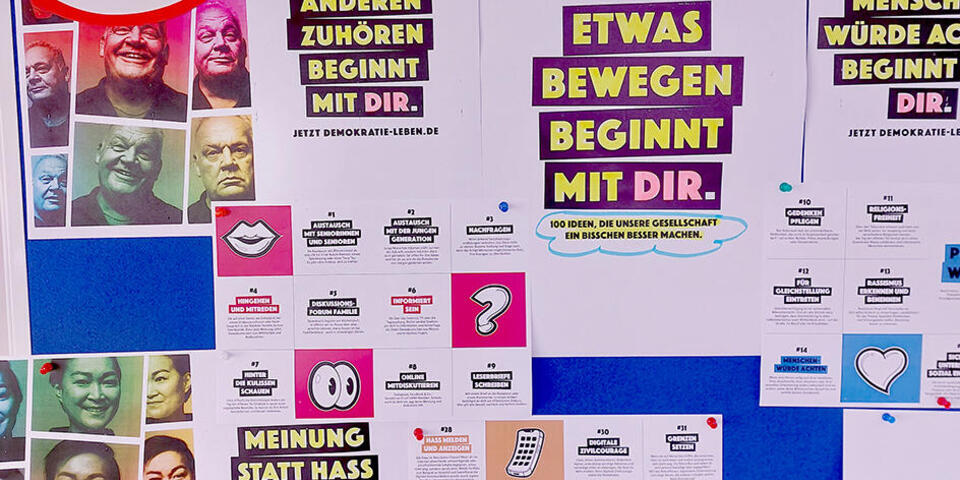 An zwei Plantafeln gab es Interessantes zu den Themen „Demokratie - was ist das eigentlich“ und „100 Ideen die unsere Gesellschaft ein bisschen besser machen“ zu lesen. Bei Erfrischungsgetränken und kleinen Snacks haben sich die Kolleginnen und Kollegen angeregt über die Inhalte ausgetauscht.