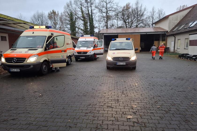 Ehrenamtliche Kollegen der Ortsverbände Bielefeld und Paderborn unterstützten am gestrigen Montagabend mit Krankentransportwagen, weiteren Fahrzeugen und bei der Verpflegung von Betroffenen.