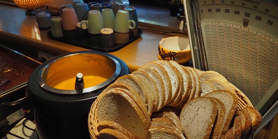 Zur Stärkung erwartete das Hochwasserhilfe-Team seine Gäste mit einem leckeren, herbstlichen Mittagessen im Naturfreundehaus Berg. Beim gemeinsamen Basteln entstanden aus Naturmaterialien wie Holz, Kastanien und Kürbissen kreative Kunstwerke. Auch ein schönes Johanniter-Mandala aus bunten Blättern legte die Gruppe auf ihrem Weg und schloss den Ausflug mit einem Suchspiel rund um das Naturfreundehaus ab.