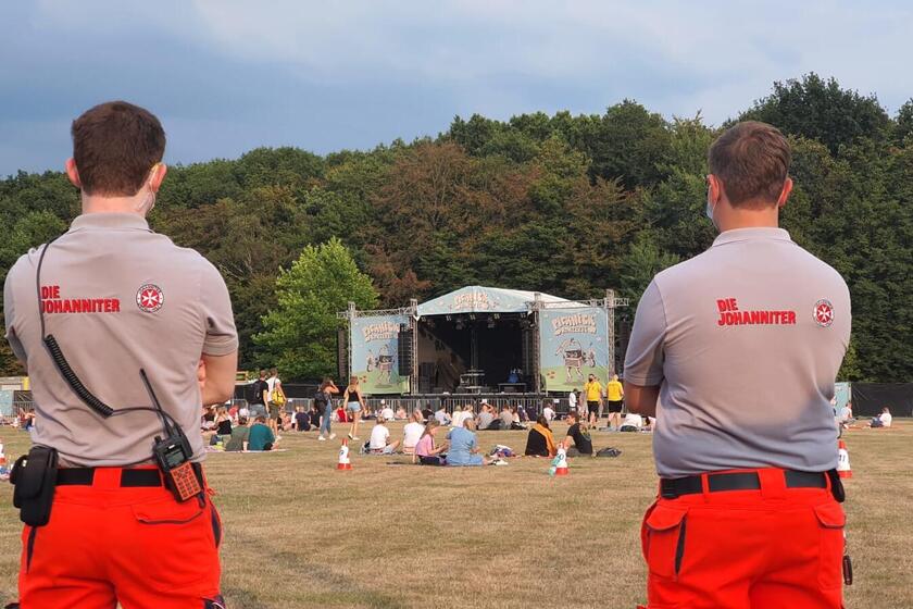 Unter freiem Himmel und auf Picknickdecken machten es sich die Gäste an den letzten beiden Wochenenden auf den Parkwiesen am Allwetterzoo gemütlich. Zu Gast: Lea, Motrip, Provinz und Faber. Zu zweit oder zu viert sitzen die Gäste auf ihren Picknickdecken, seitlich ist zwischen den Decken anderthalb Meter Abstand, nach vorne und nach hinten ganze drei Meter. Jeder hat einen festen Platz. Unsere Helferinnen und Helfer sorgten dabei für die medizinische Sicherheit der Veranstaltung und waren für alle kleineren und größeren Notfälle vor Ort.