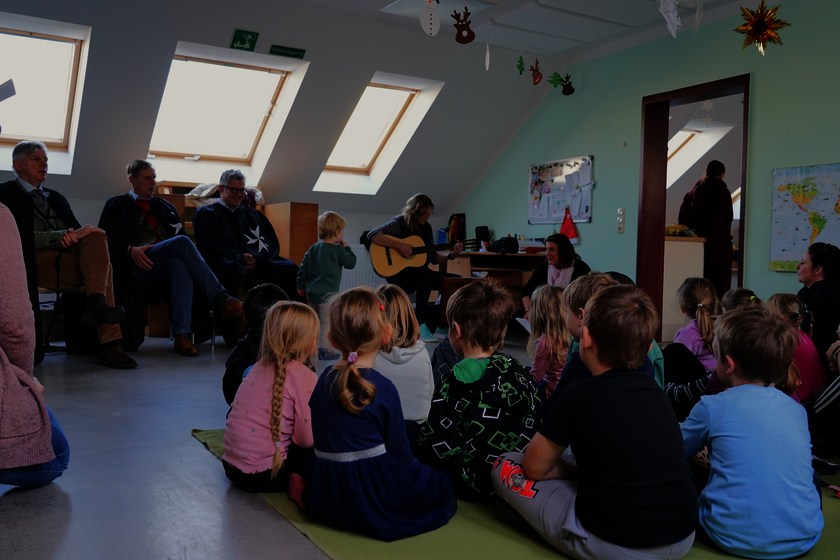 Als besonderes Dankeschön hatten die Kinder gemeinsam mit ihren Erzieherinnen ein musikalisches Geschenk vorbereitet. Mit dem Lied „Stille Nacht, heilige Nacht“, begleitet auf der Gitarre, schufen sie eine festliche und berührende Atmosphäre, die auch die anwesenden Ordensritter spürbar bewegte.