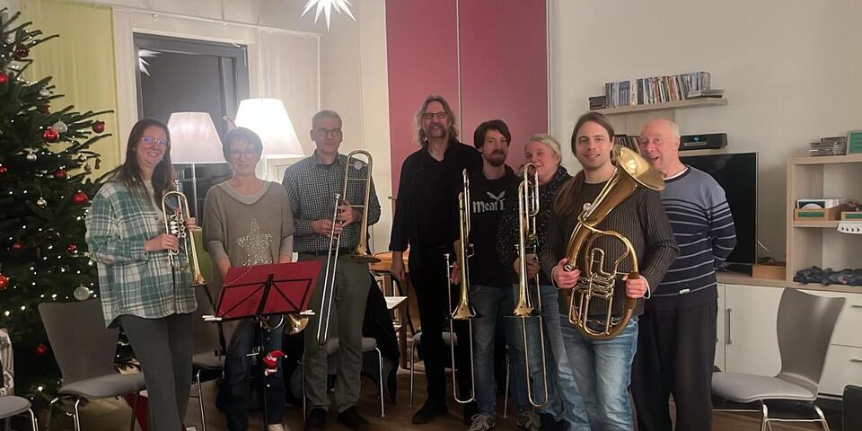 Doch die Ehrenamtlichen hatten sich nicht nur um den Baum gekümmert: Sie backten auch köstliche Kekse, die im gesamten Haus verteilt wurden. Der Duft aus der Backstube verbreitete sich und schuf eine wohlige Atmosphäre, die sowohl unsere Gäste als auch das Team mit Vorfreude auf die bevorstehenden Festtage erfüllte. Am Abend erwartete die Gäste ein musikalisches Highlight: Der Posaunenchor Rekum/Farge stimmte mit festlichen Klängen auf die Weihnachtszeit ein. Die Musik erfüllte das Hospiz und verbreitete eine herzliche, feierliche Stimmung im ganzen Haus.