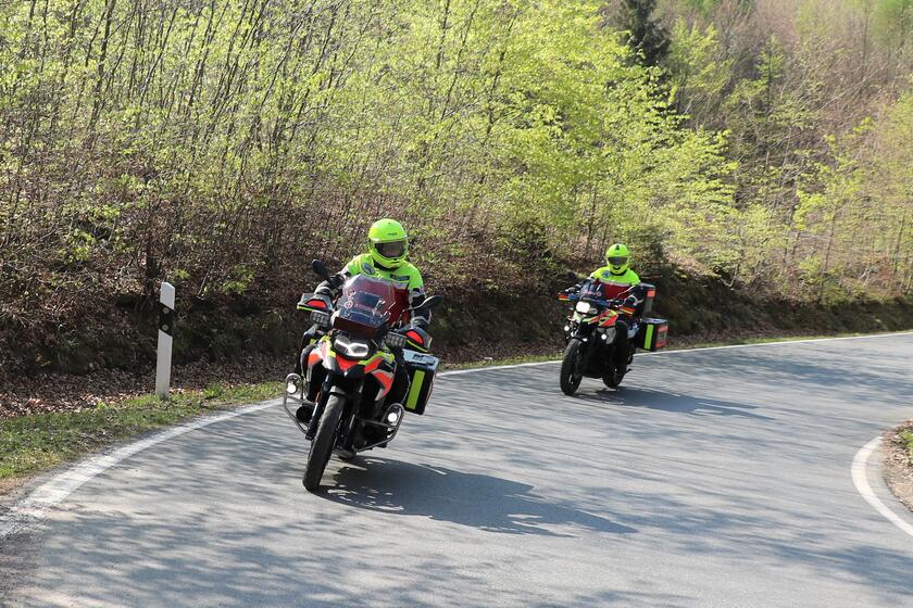First Aid Highway: Dieser Erste-Hilfe-Kurs ist speziell auf Motorradfahrerinnen und -fahrer zugeschnitten. Auf einer Ausfahrt durch Lippe-Höxter schulen die Johanniter in vielen praktischen Übungen typische Situationen bei einem Motorradunfall.