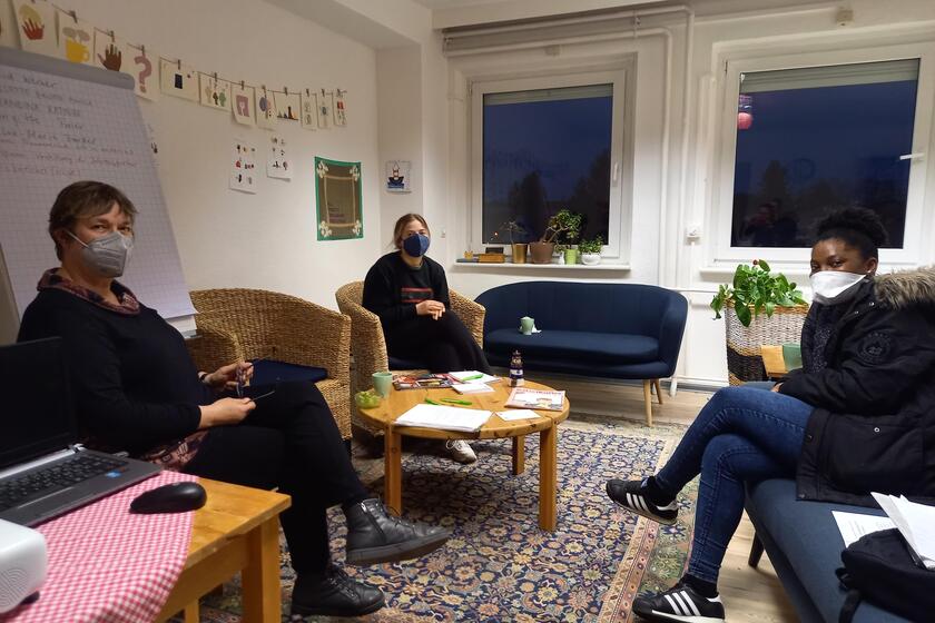 Man könnte sie motivieren, zu Organisationen wie den ‚Johannitern‘ zu gehen oder zu Kursen, um besser Anschluss zu finden. Es kann auch helfen, Sportvereinen beizutreten. Ein Deutschkurs ist natürlich immer vom Vorteil. Außerdem müssen sie sich einfach trauen, mit anderen zu reden und Kontakte zu suchen.