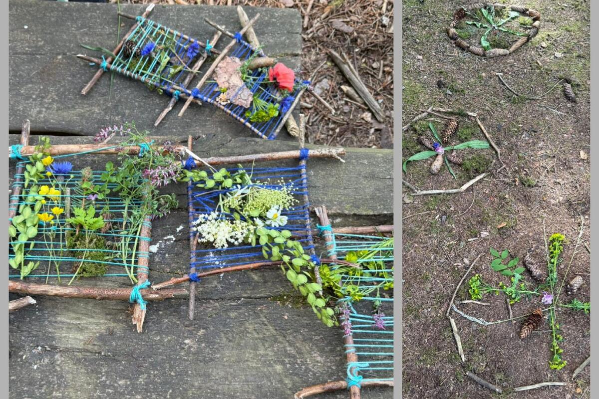 Bei bestem Wetter liefen wir 2,7 km – eine kleine Herausforderung für kurze Beine, aber mit viel Freude und Bewegung. Im Wald wartete ein liebevoll vorbereitetes Picknick, zu dem viele Eltern köstliche Kleinigkeiten beigesteuert hatten. Danach wurde es kreativ und aktiv: An verschiedenen Stationen legten die Kinder Mandalas aus Naturmaterialien, gestalteten Bilderrahmen mit Waldschätzen, erkundeten eine Barfußstrecke oder spielten „Bäumchen, wechsel dich“. Den Abschluss bildete die fantasievolle Geschichte vom Borkenkäfer Willy und seiner Familie.